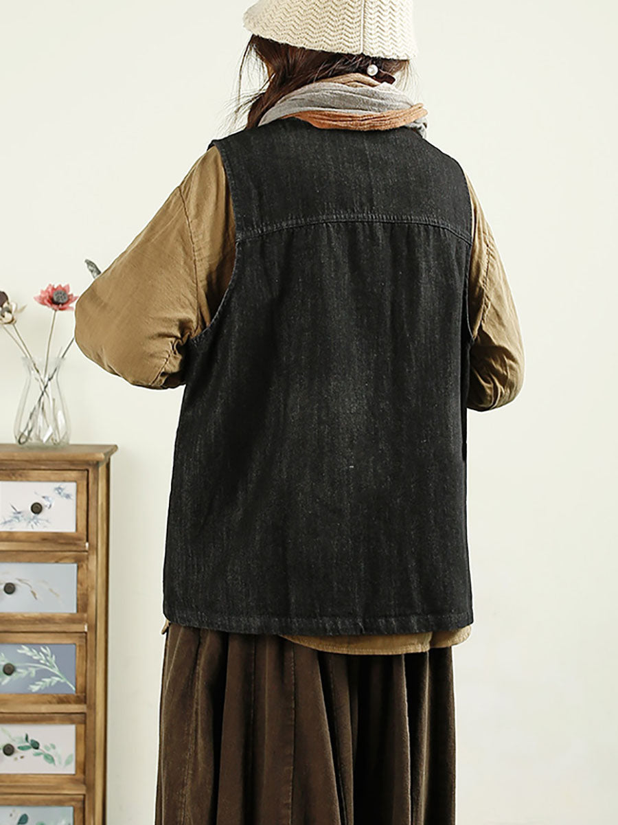 Made of cotton. this vest features a beautiful floral design and a classic O-neck collar. The sleeveless design and vintage style make it perfect for the spring and autumn seasons.