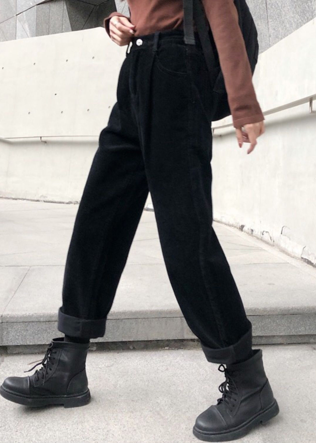 Women Khaki Pockets High Waist Warm Fleece Pants Fall TU032