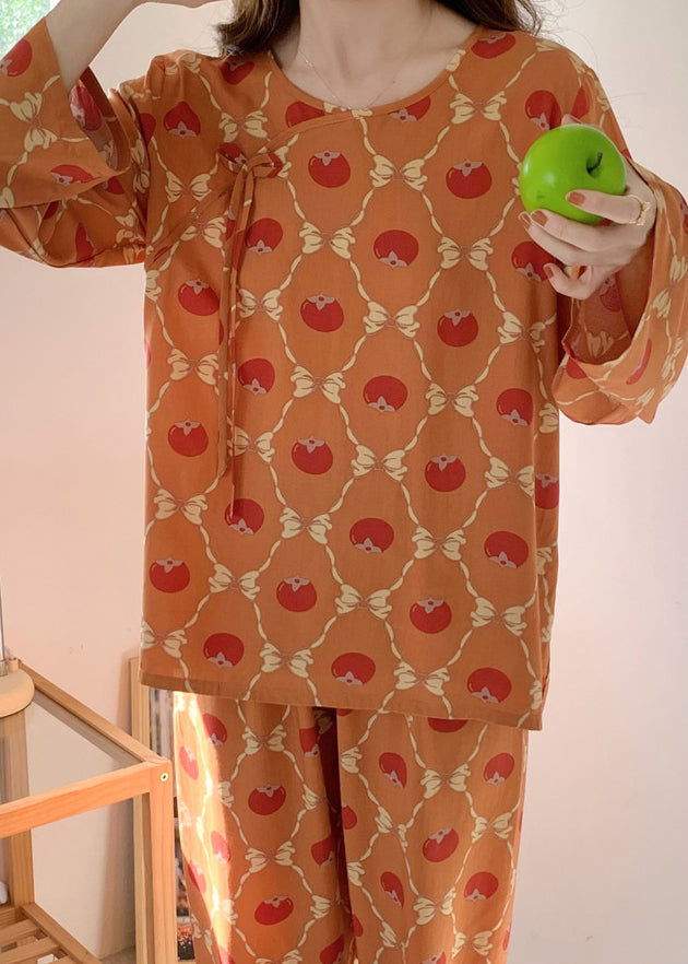 Women Orange O-Neck Bow Silk Velvet Two Piece Set Long Sleeve XS1004