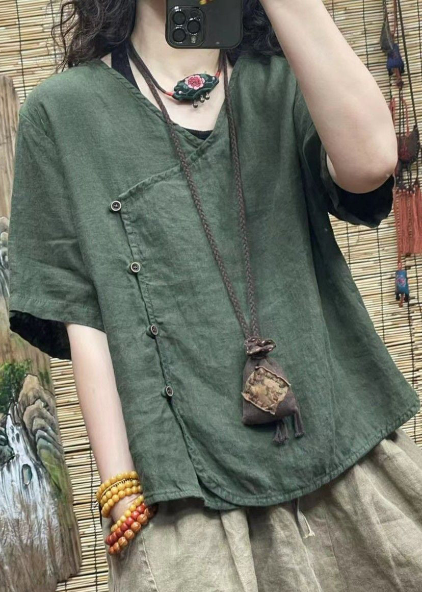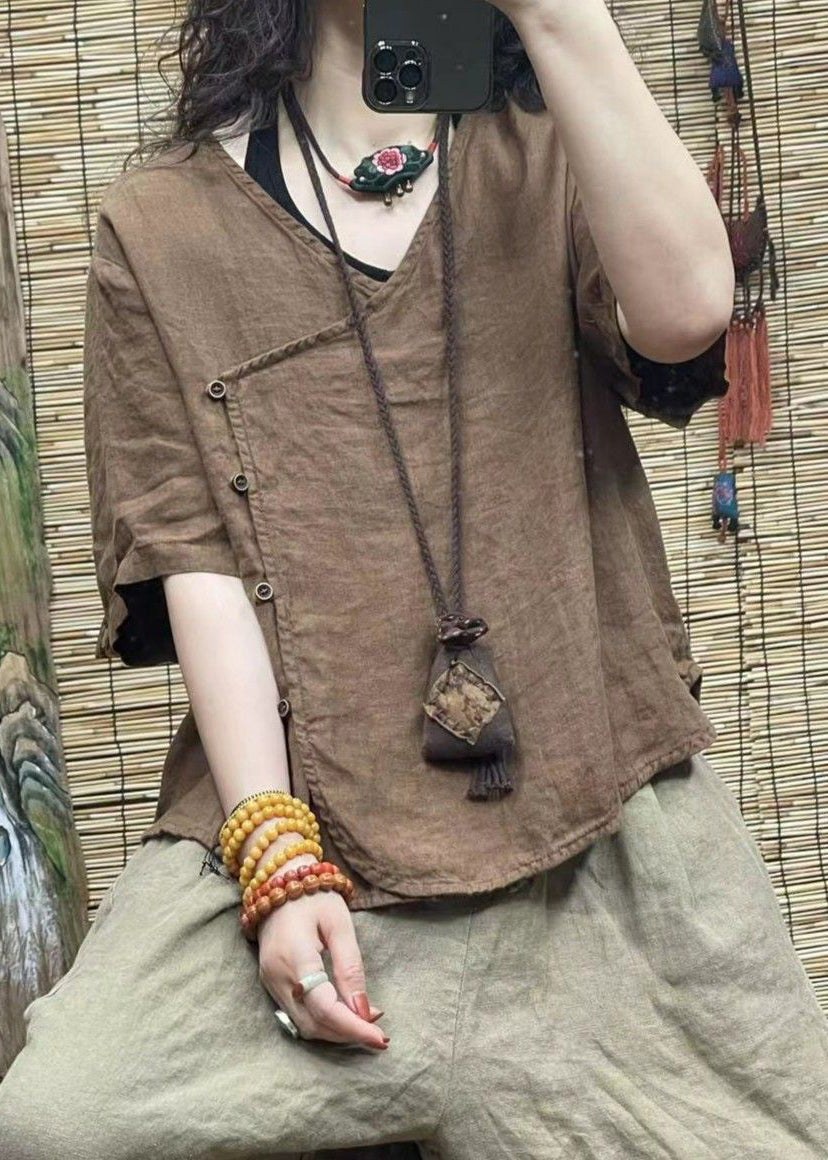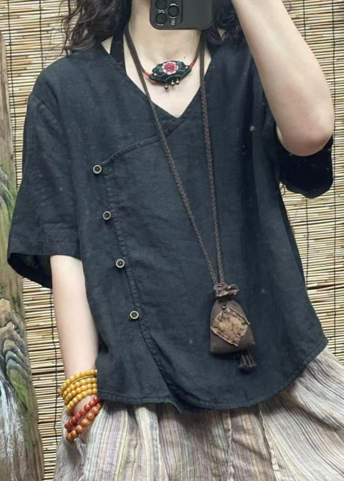 Women Pink V Neck Button Solid Cotton Shirt Summer VV060