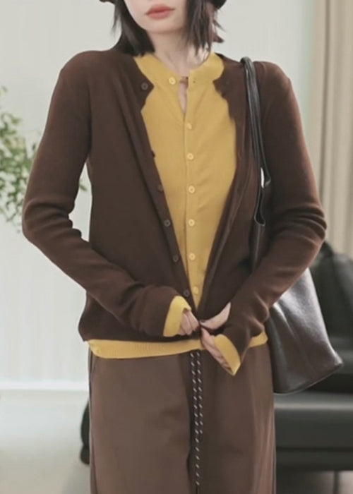 Women Purple Button Patchwork False Two Pieces Knit Sweaters Winte WM017