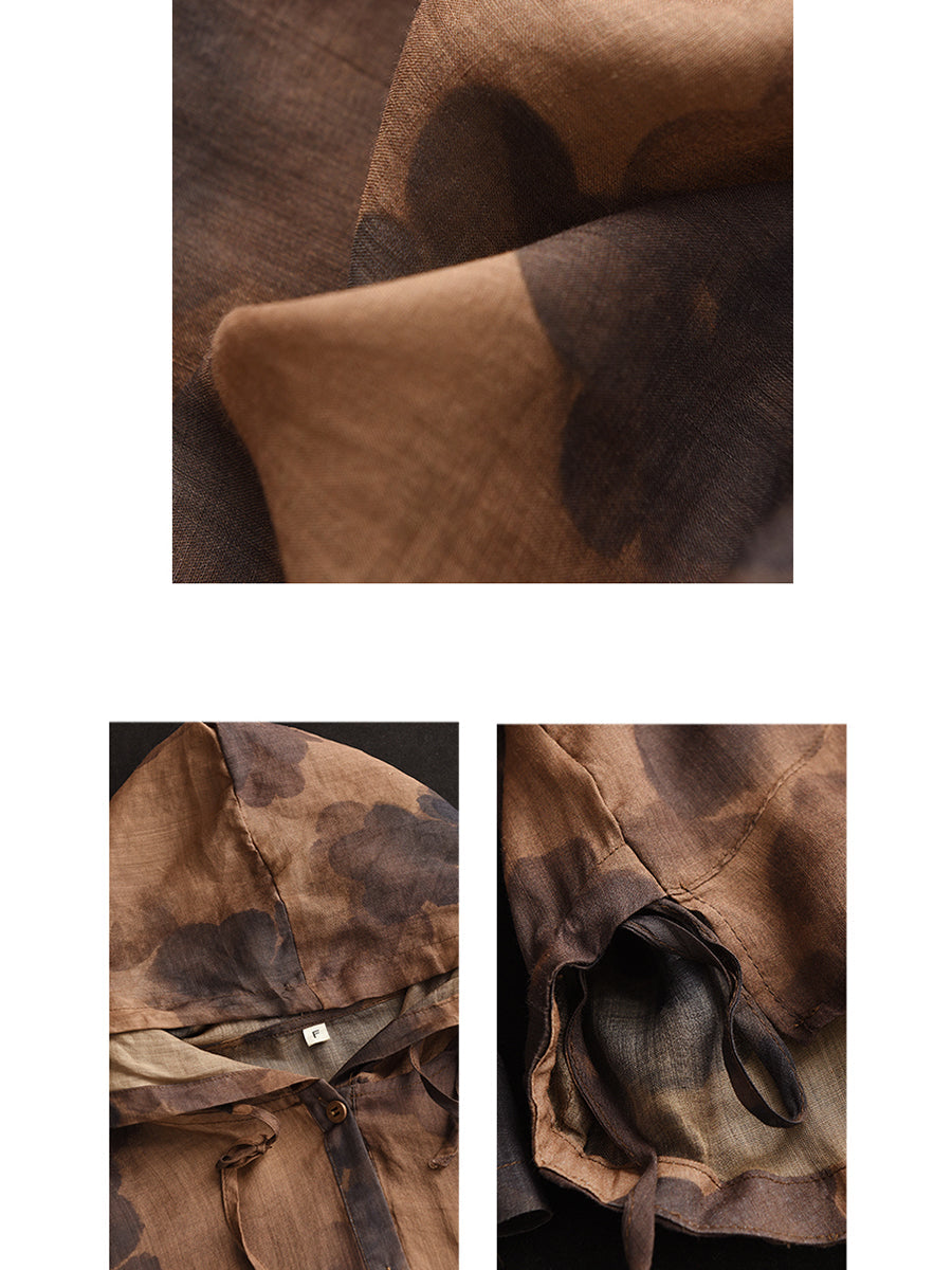 Women Spring Artsy Flower Button-Up Hooded Shirt CO1004