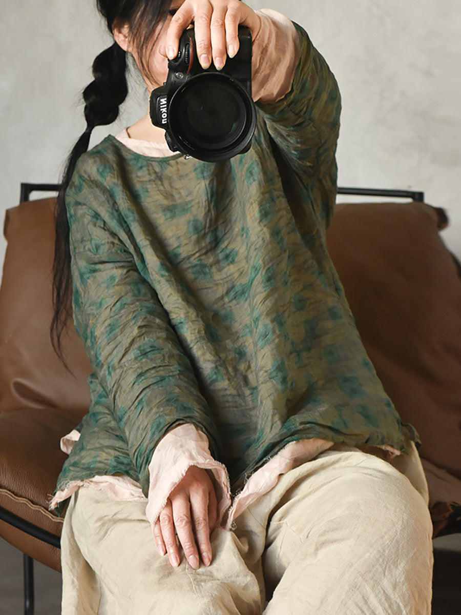 Women Spring Artsy Tie-dye Ramie Blouse CO1034
