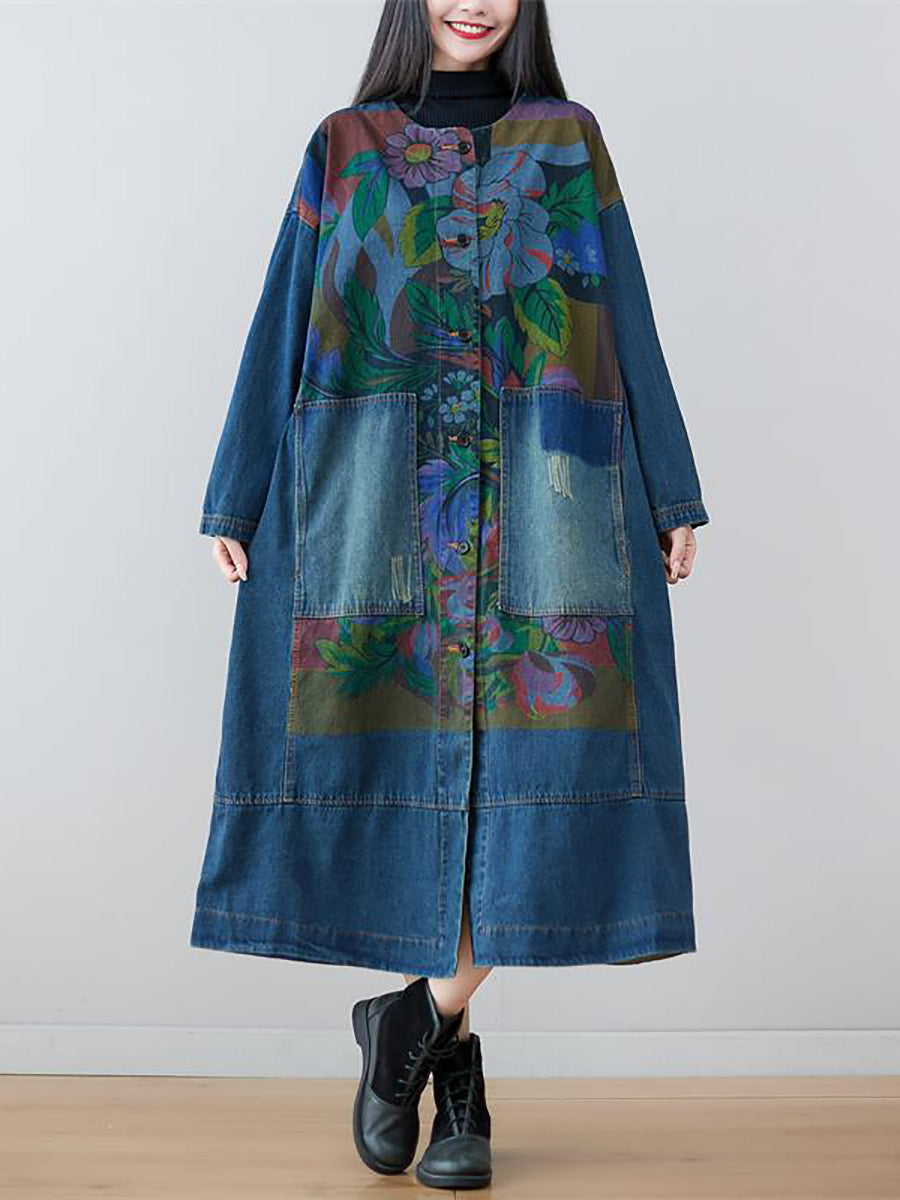 Elevate your spring wardrobe with our Women Spring Flower Print Loose Long Denim Dress. Crafted with a loose, comfortable fit and adorned with a vibrant floral print, this dress effortlessly combines fashion and comfort. Perfect for any occasion, it's a must-have for the stylish and practical woman.