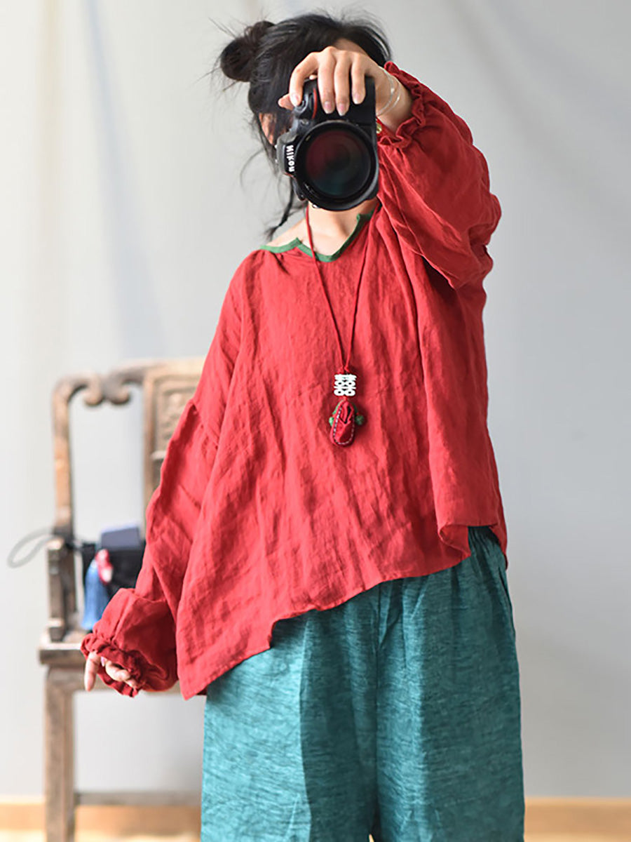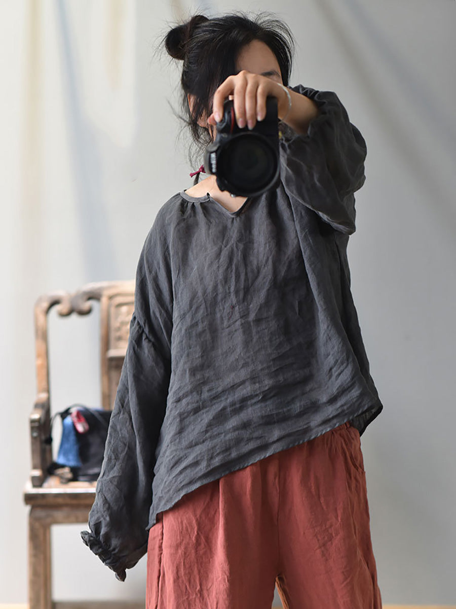 Introducing our Spring Retro V-Neck Puff Sleeve Shirt for women. Elevate your wardrobe with this sophisticated and exclusive piece. The delicate V-neck and puffed sleeves add a touch of luxury, making you stand out in any setting. Made with high-quality materials for a comfortable and elegant fit. Upgrade your style with this timeless classic.