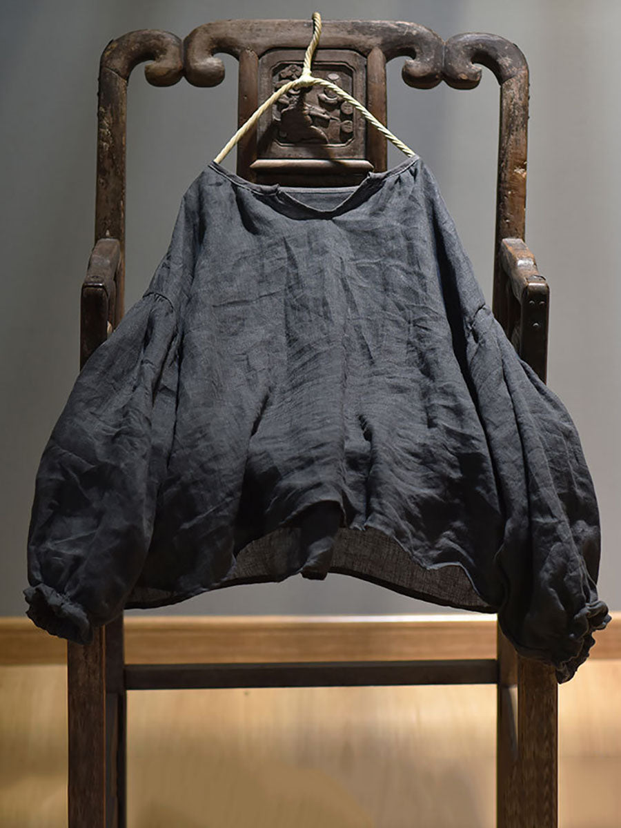 Women Spring Retro V-Neck Puff Sleeve Shirt AV1037