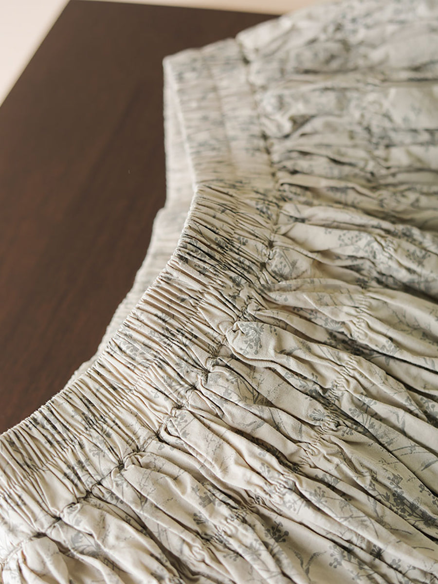 Women Summer Artsy Floral Shirred Cotton Skirt WE1042