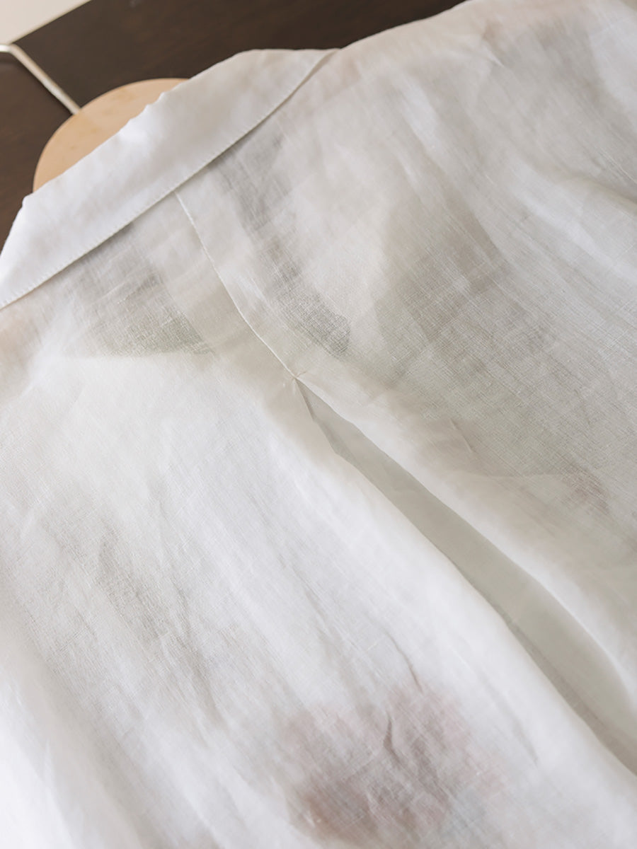 Women Summer Artsy Flower Shirred Button-up Ramie Shirt LL041