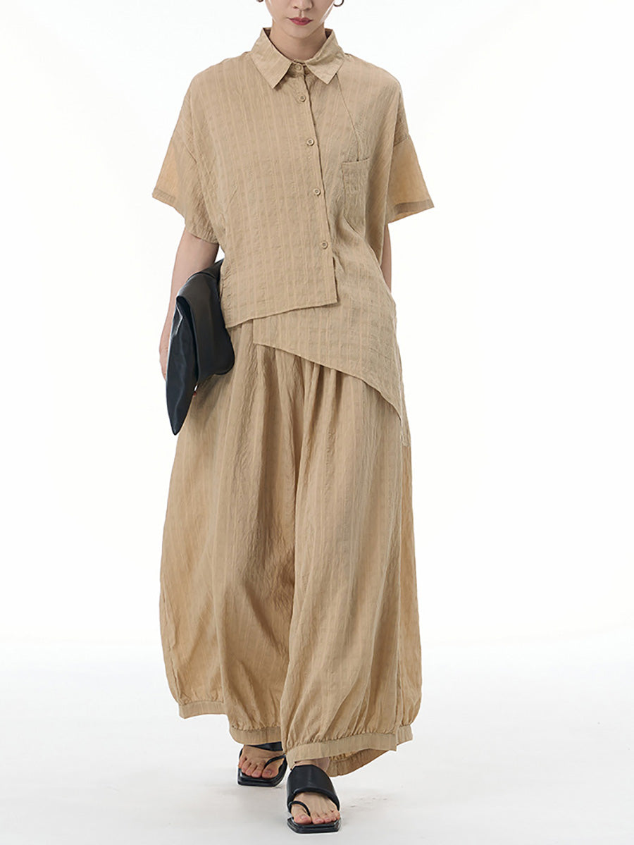 Elevate your wardrobe with this elegant, one-of-a-kind plaid button-up shirt. Crafted from high-quality Tencel fabric, it boasts a turn-down collar and short raglan sleeves, making it the perfect addition for your spring and summer collection. Immerse yourself in luxury and sophistication with its unique artsy design.
