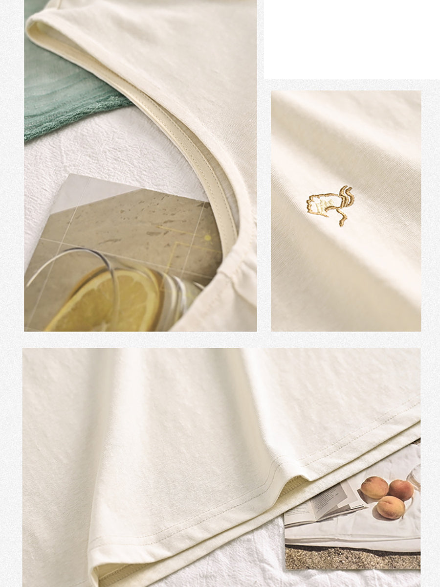 Women Summer Artsy Rmboidery O-Neck Cotton Vest PP1042