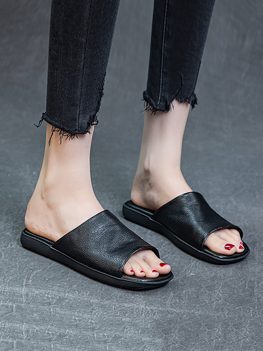 Women Summer Casual Solid Leather Flat Slippers FD052