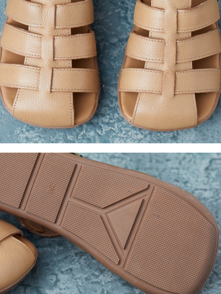 Women Summer Casual Solid Leather Spliced Flat Shoes FD036