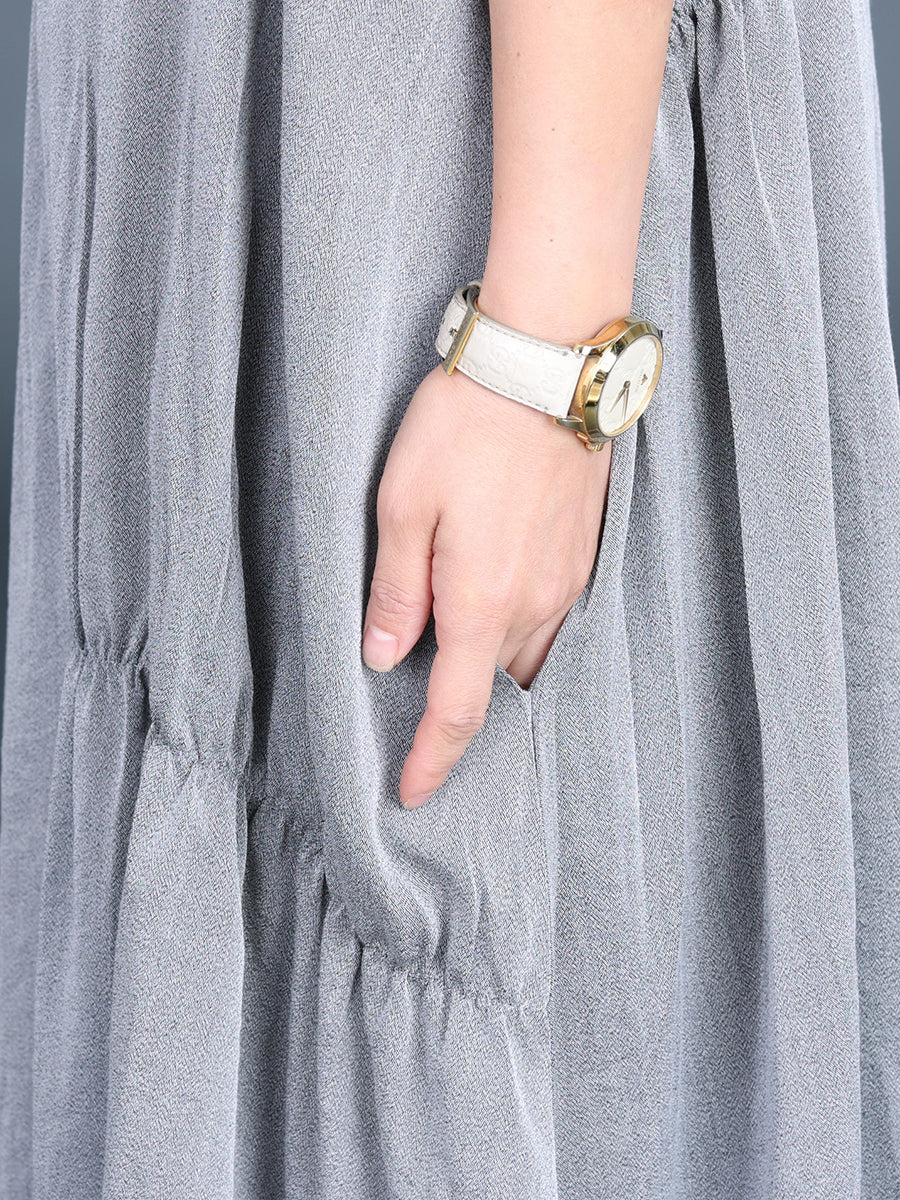 Indulge in the luxurious blend of cotton and linen with this exquisite O-neck collar dress. With its solid pattern and short raglan sleeves, it gracefully falls to calf-length, while the intricate stitching adds a sophisticated touch. Ideal for summer, this dress exudes tasteful elegance.