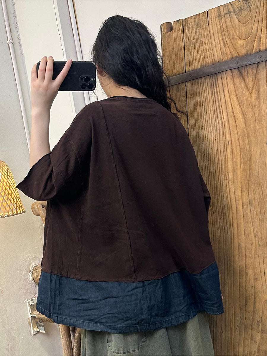 Women Summer Colorblock Casual Cotton Shirt II1053