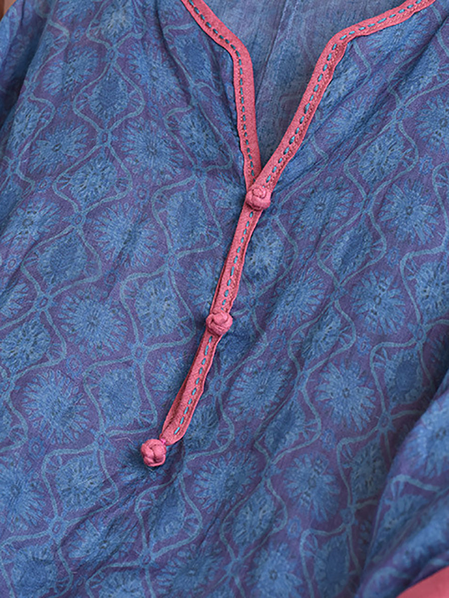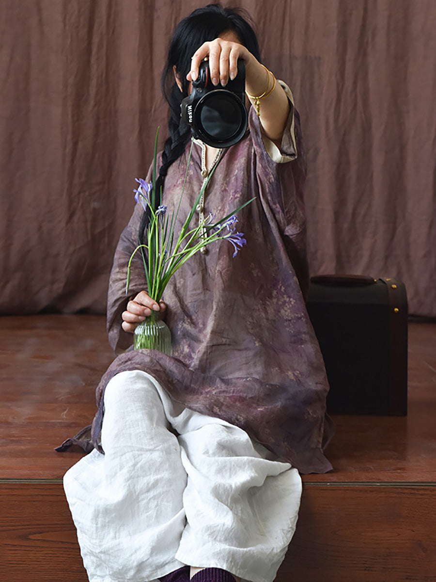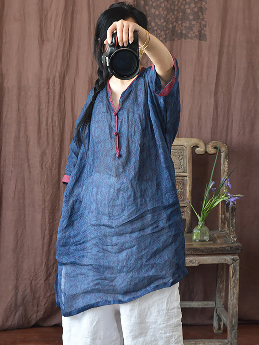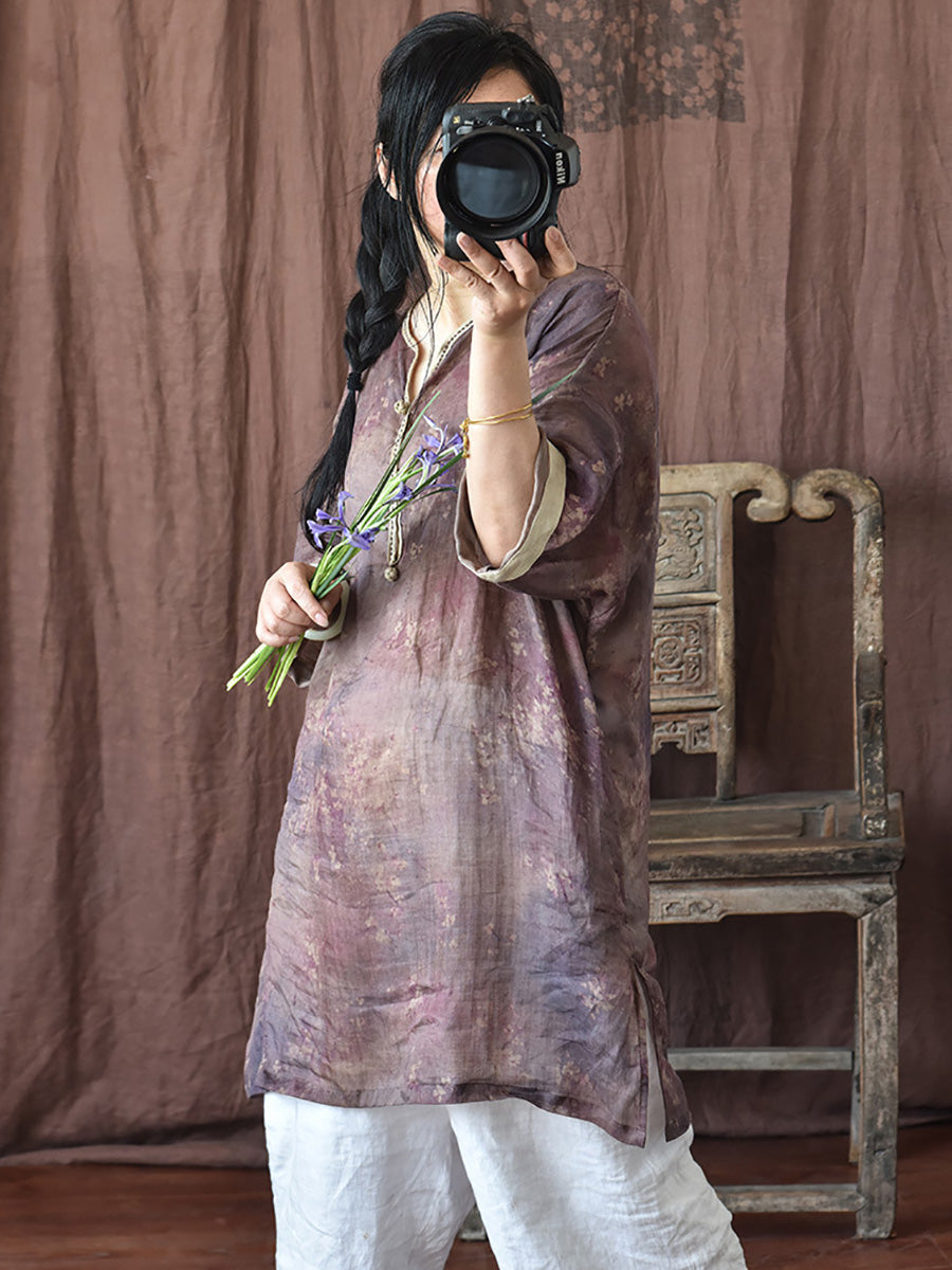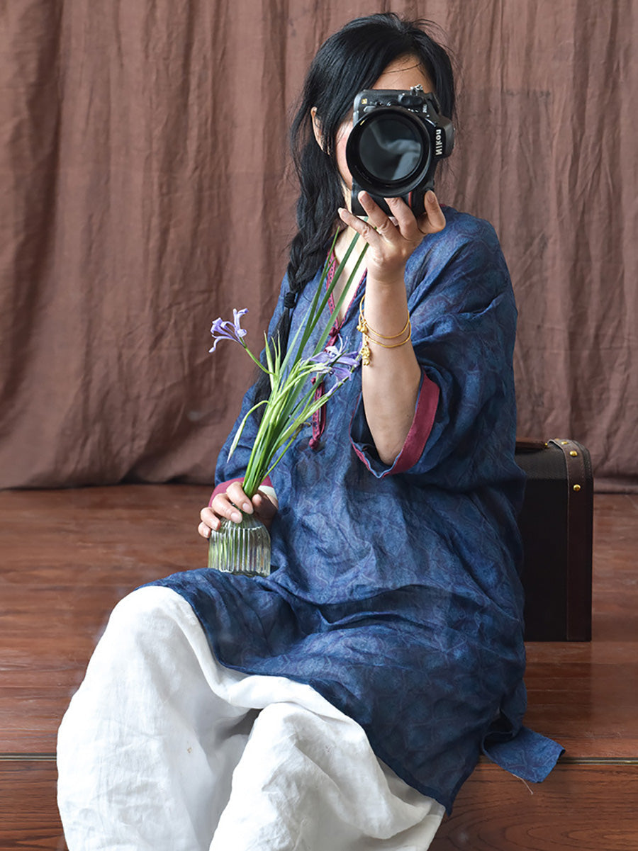 Women Summer Ethnic Floral Loose Ramie Dress LL016