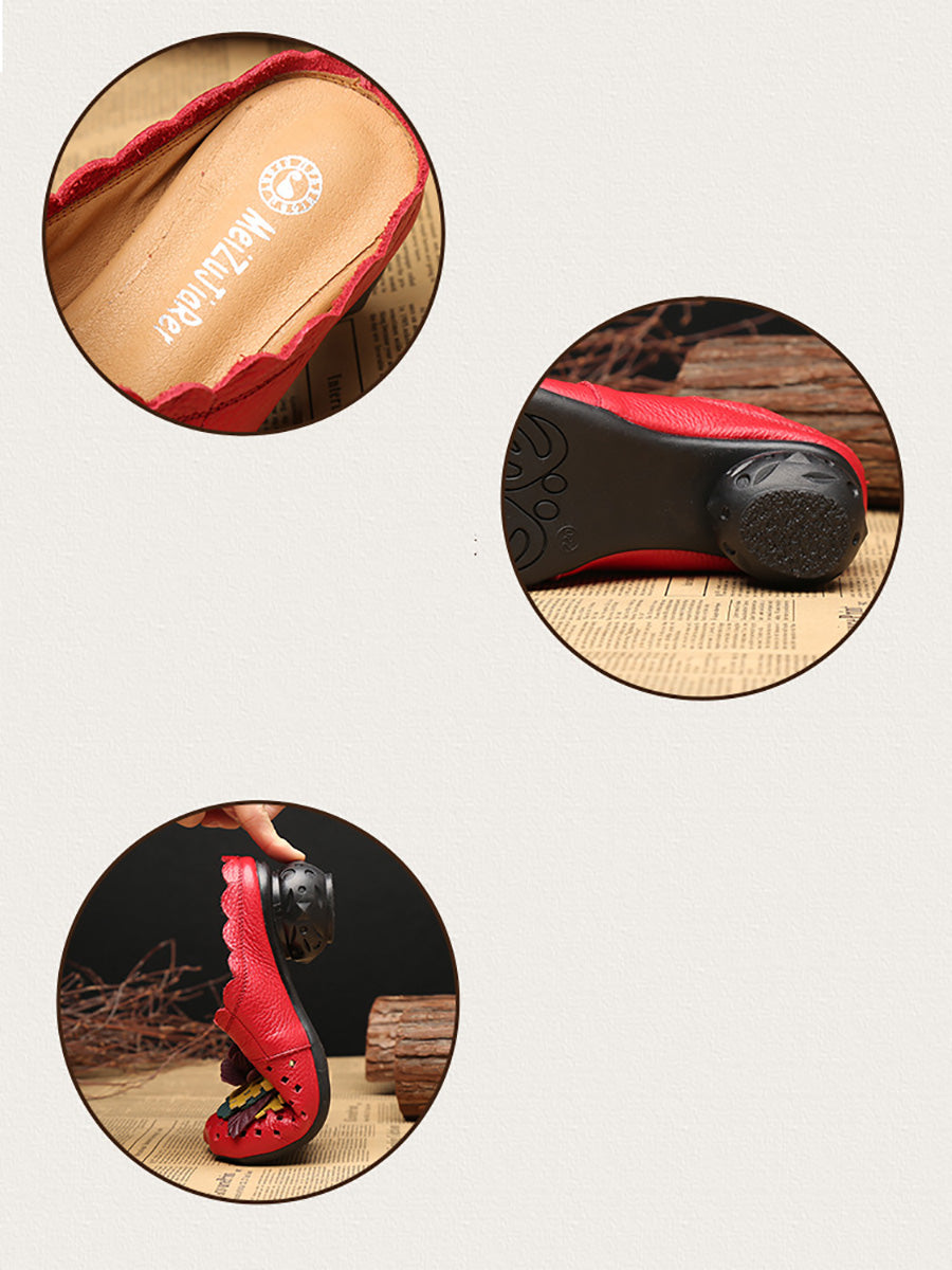 Women Summer Ethnic Leather Flower Spliced Low Heel Sandals FD014