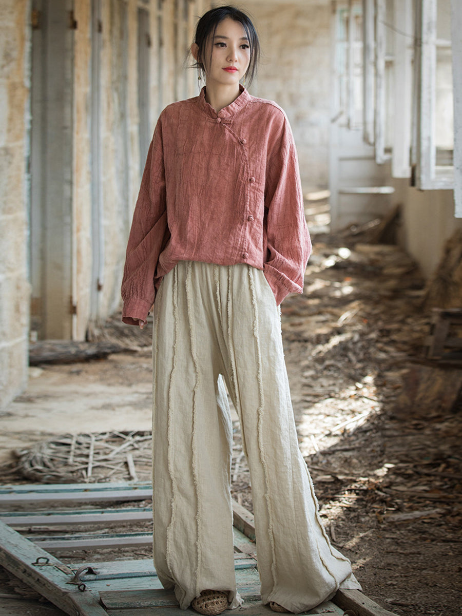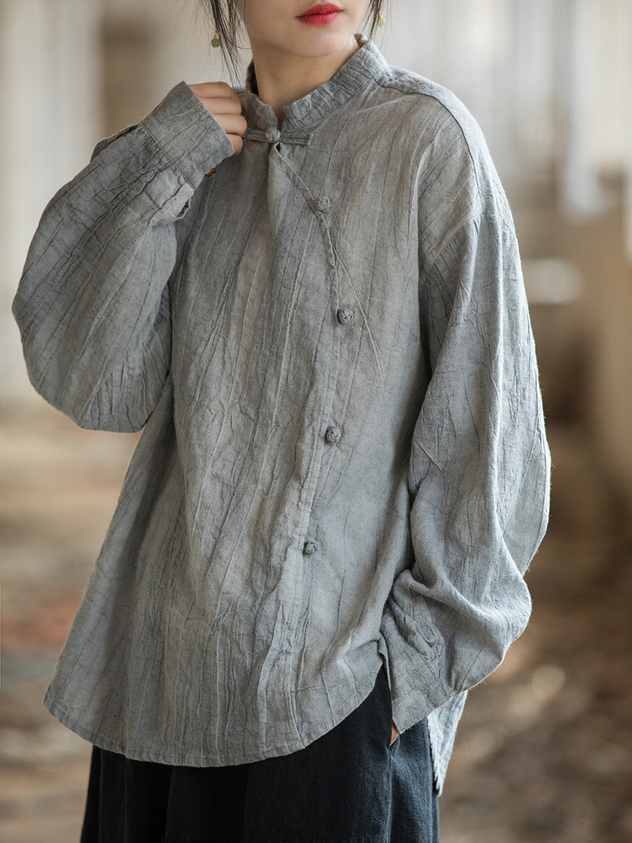 This women's summer shirt features a comfortable, loose-fit design with long sleeves. Made from a blend of cotton and ramie, it offers a versatile and stylish option for any wardrobe. Perfect for any occasion, this shirt is sure to become a staple piece in your summer wardrobe.
