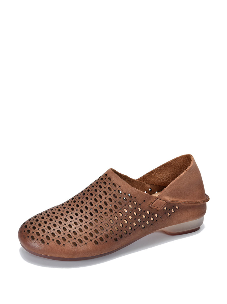 Women Summer Leather Cutout Low Heel Sandals II1025