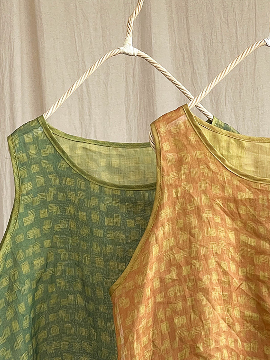 Plus Size Women Summer Plaid Artsy Thin Ramie Vest HH055