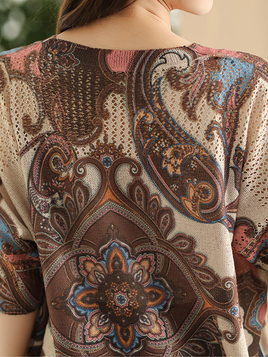 Women Summer Retro Knitted O-Neck Pullover Shirt SC1017