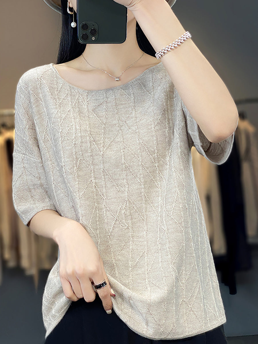 Women Summer Solid Jacquard Loose Half-Sleeve Shirt WE1033