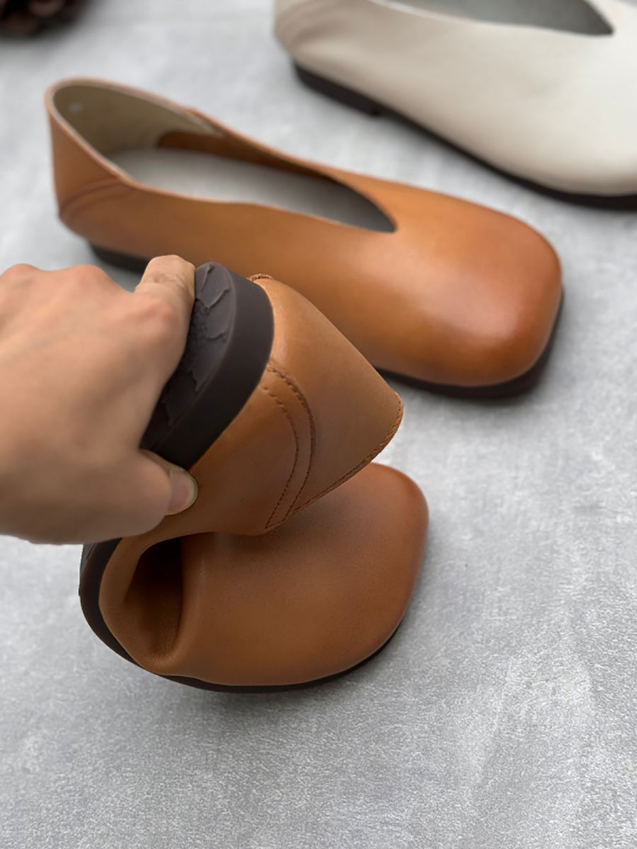 Women Summer Solid Soft Leather Low Heel Shoes OO1028