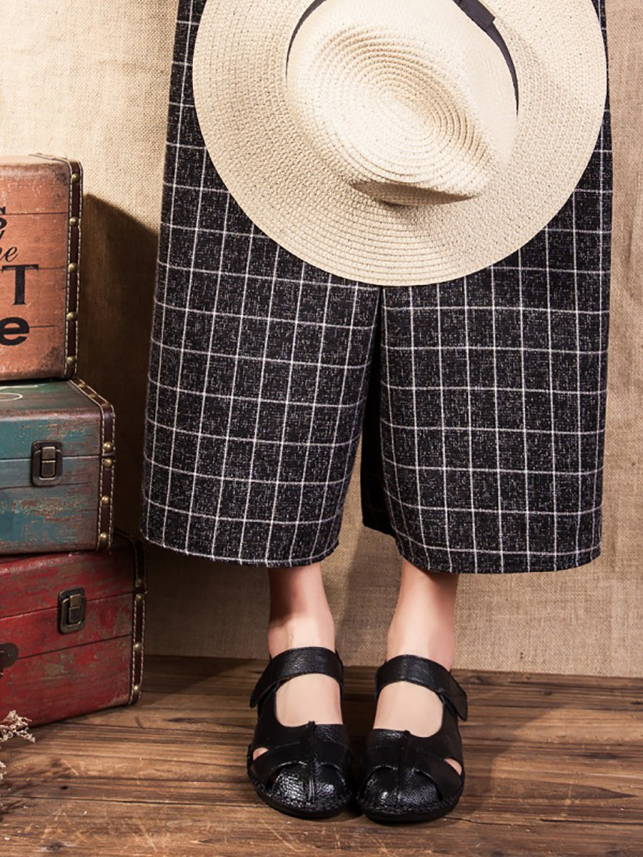 Women Summer Solid Soft Leather Spliced Flat Sandals CV1011