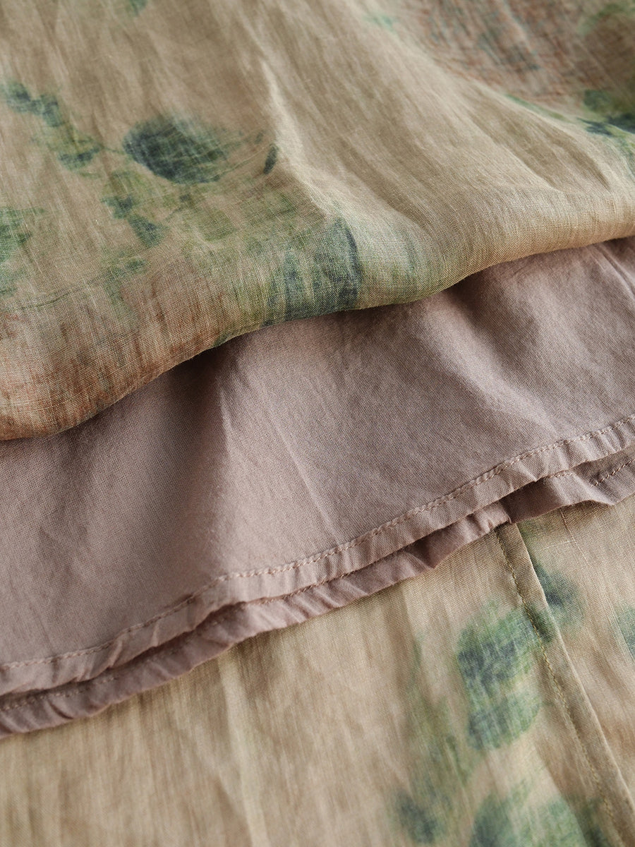 Women Summer Vintage Flower Worn Ramie Loose Skirt II1029