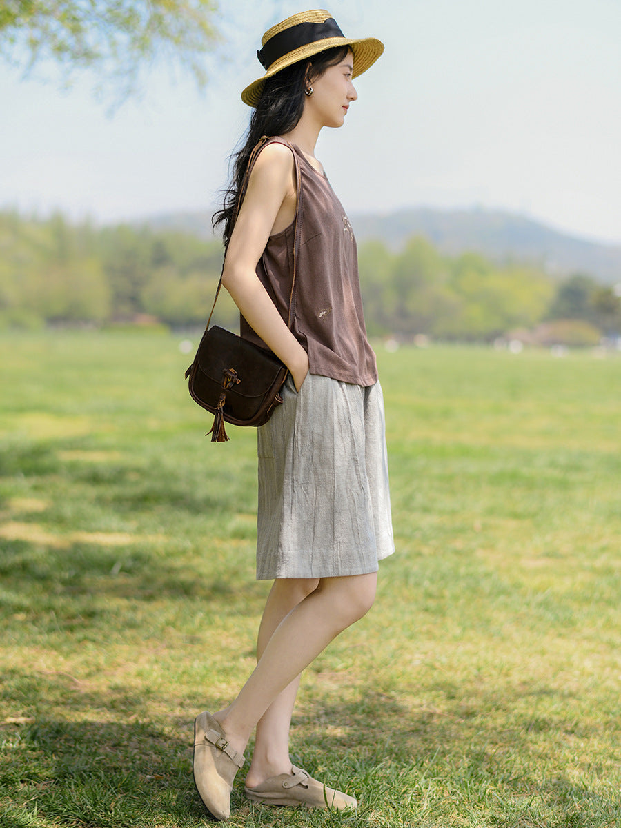 Women Summer Vintage Retro Cotton Ramie Shorts II1026