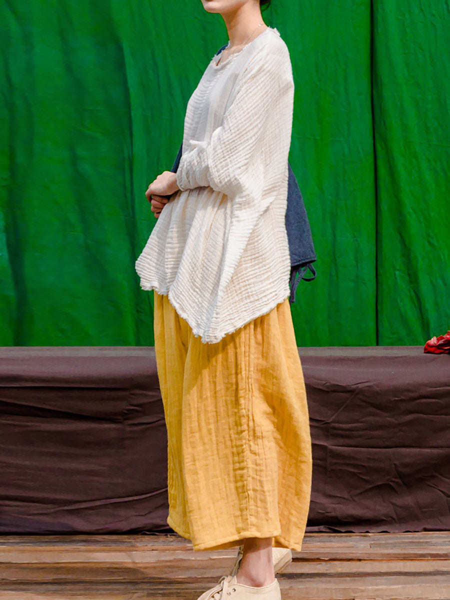 Women Summer Vintage Solid Raw-edge Cotton Shirt II1033