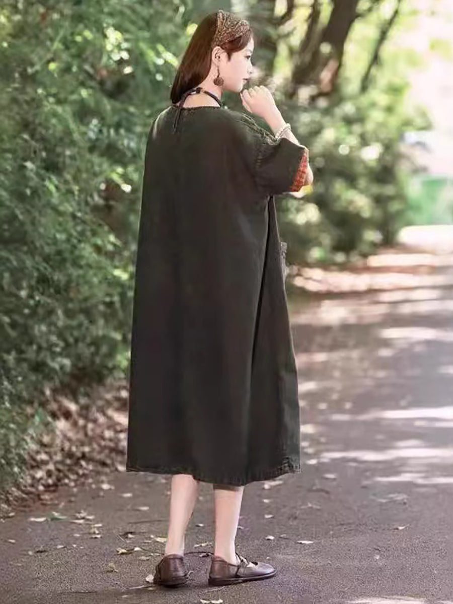 Women Summer Vintage Spliced Denim Loose Dress II1039
