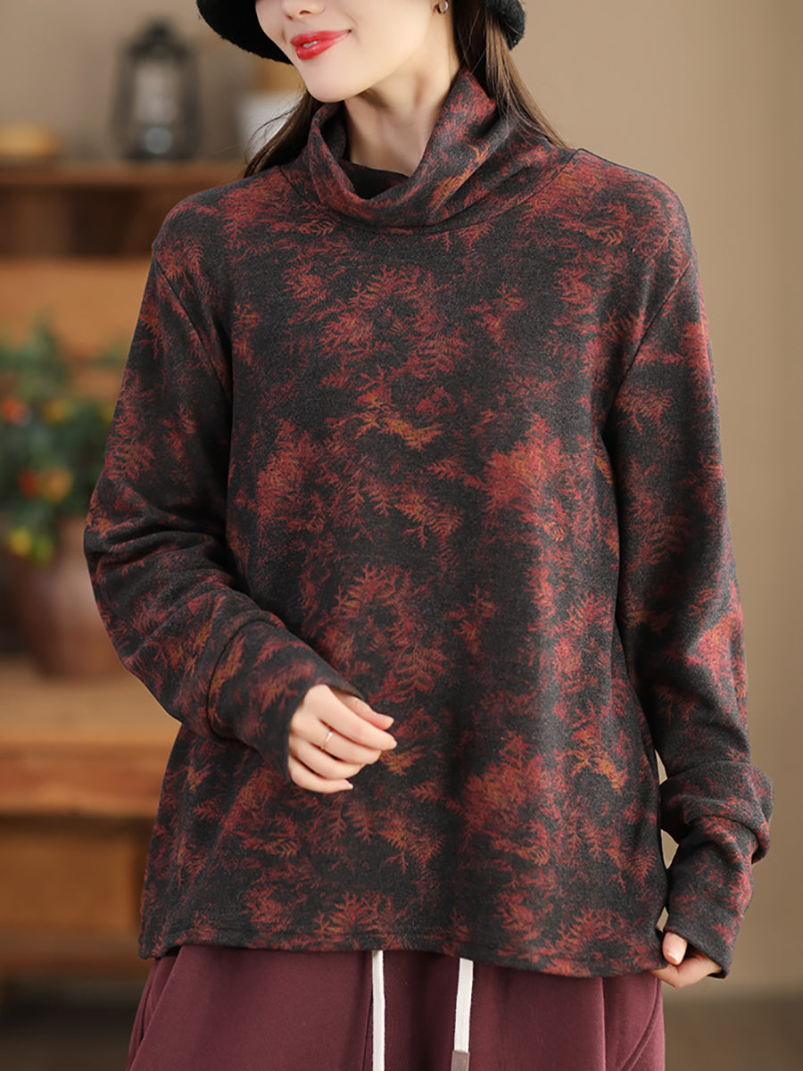 Women Vintage Autumn Flower Turtleneck Sweatshirt AK1023