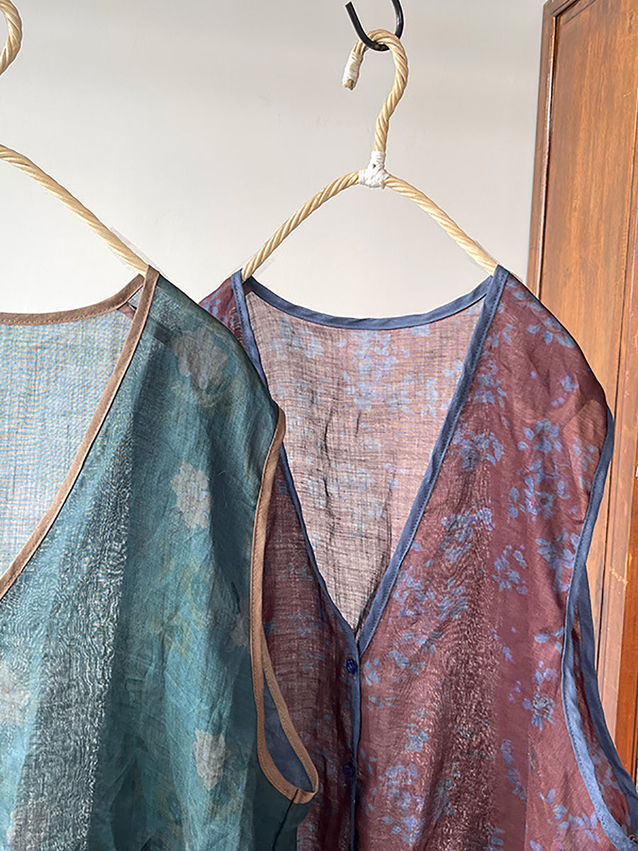 Indulge in the exquisite craftsmanship of our Women Vintage Floral Print Ramie Vest OO1001, crafted from luxurious 100% ramie and adorned with a stunning floral motif. The alluring V-neck collar adds a touch of sophistication to its vintage allure, making it the perfect addition to your spring and summer wardrobe.