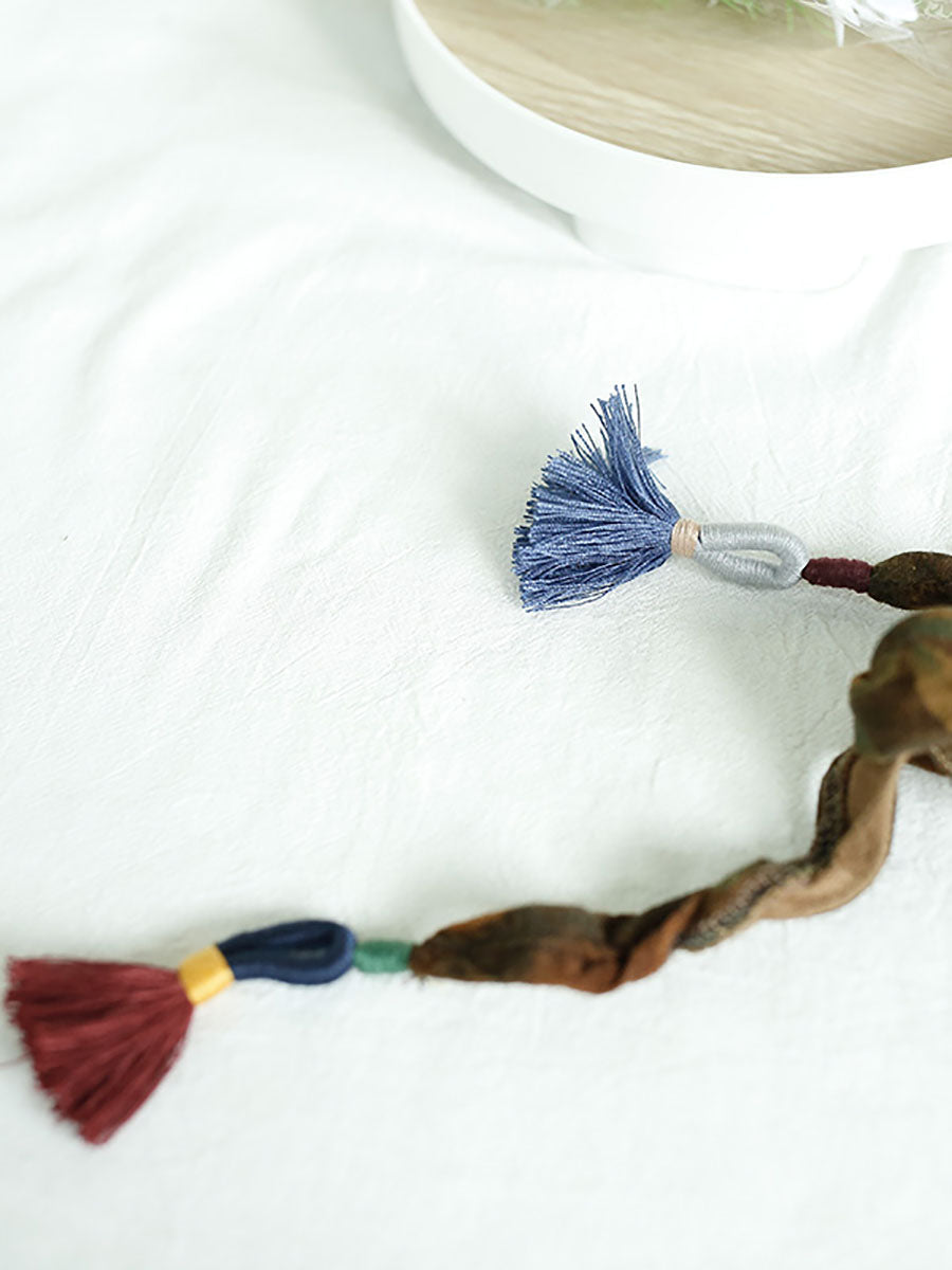 Women Vintage Flower Spliced Embroidery Linen Triangular Scarf AX1036