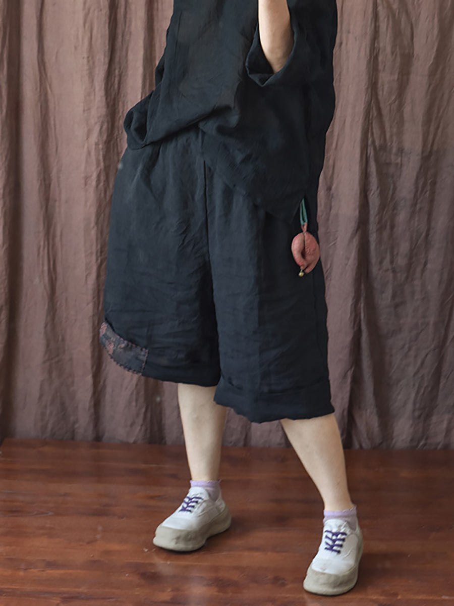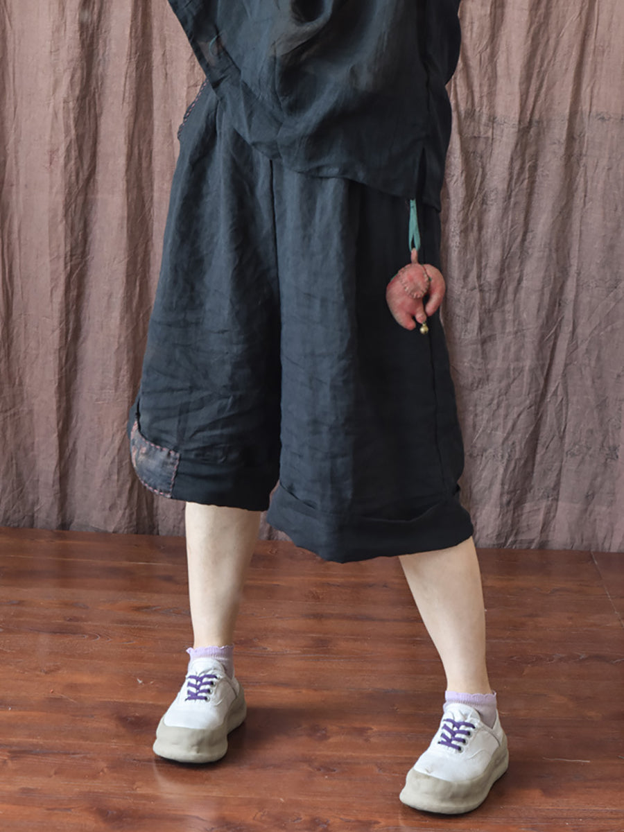 Women Vintage Patch Stitching Loose Short Pants HH052