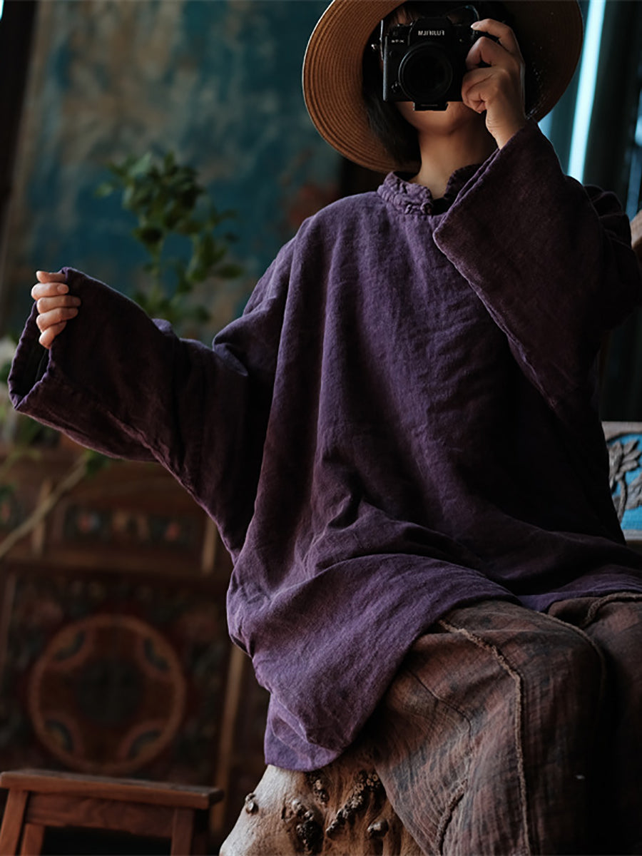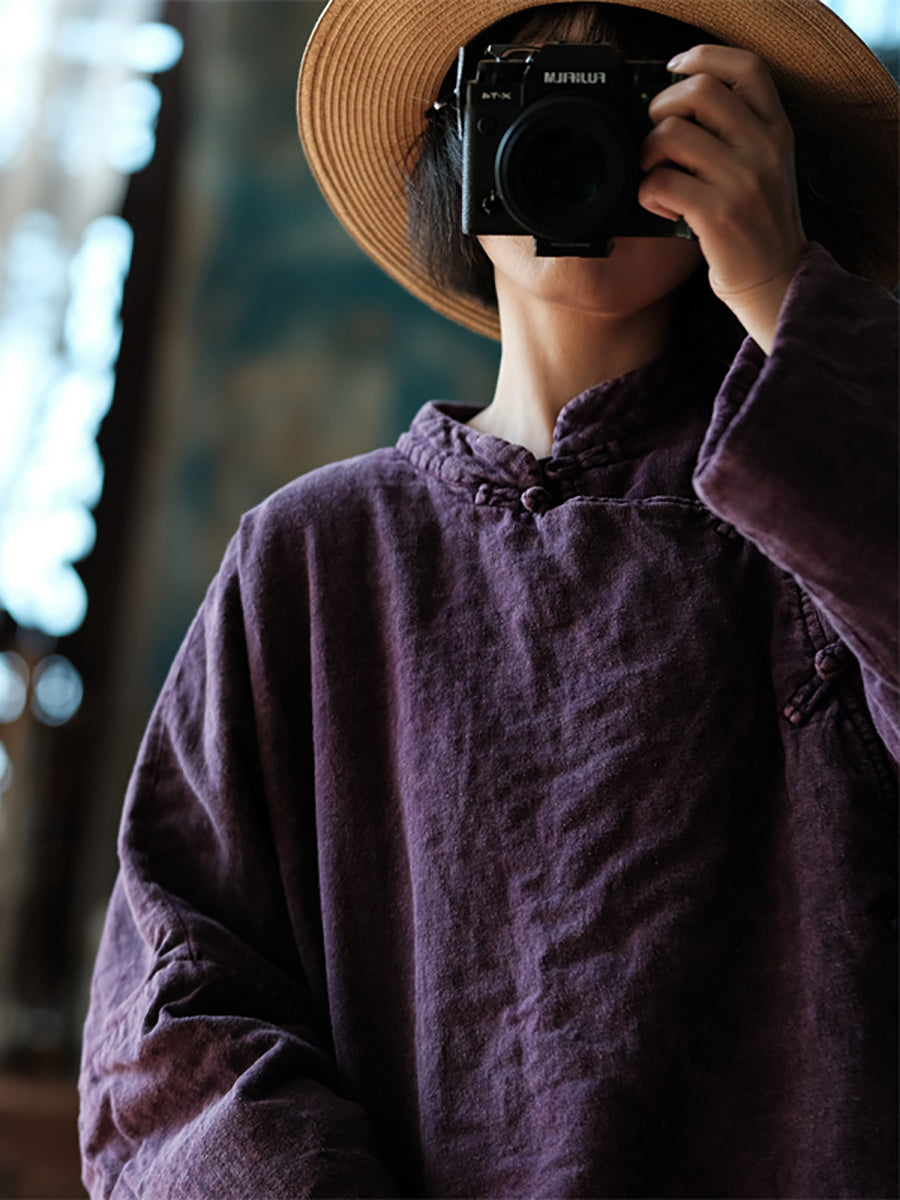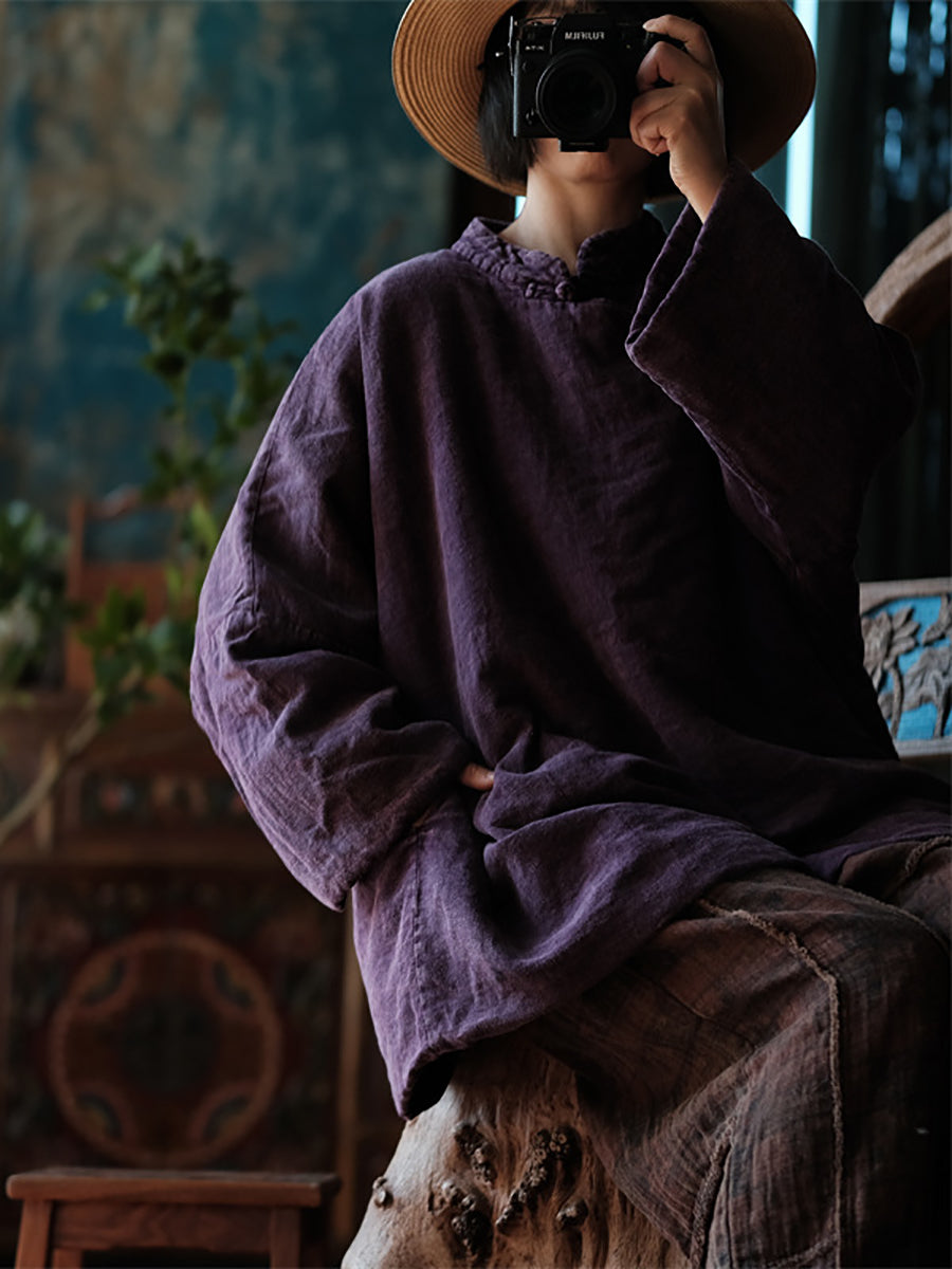 Enhance your wardrobe with our Women Vintage Retro Stand Collar Cotton Linen Coat. Made from high-quality cotton and linen blend, this coat exudes vintage and retro vibes with its stand collar design. Keep yourself warm and stylish with this coat that makes a perfect addition to any outfit.