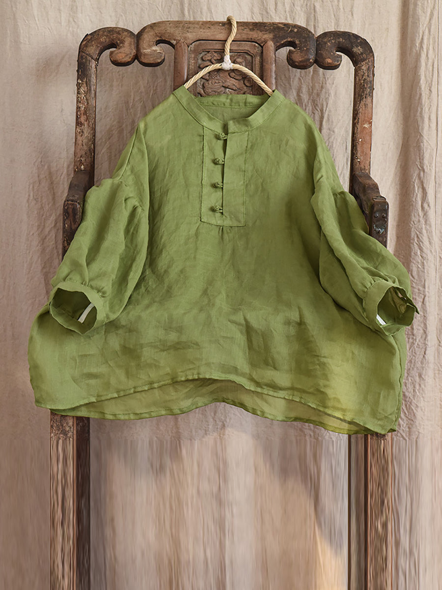 Women Vintage Solid 100%Ramie Summer Loose Shirt AS1047