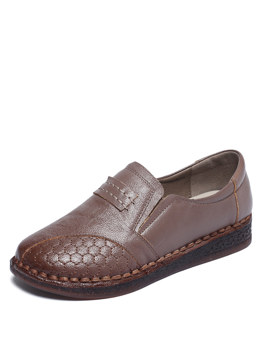 Women Vintage Summer Leather Spliced Low Heel Shoes AS1010