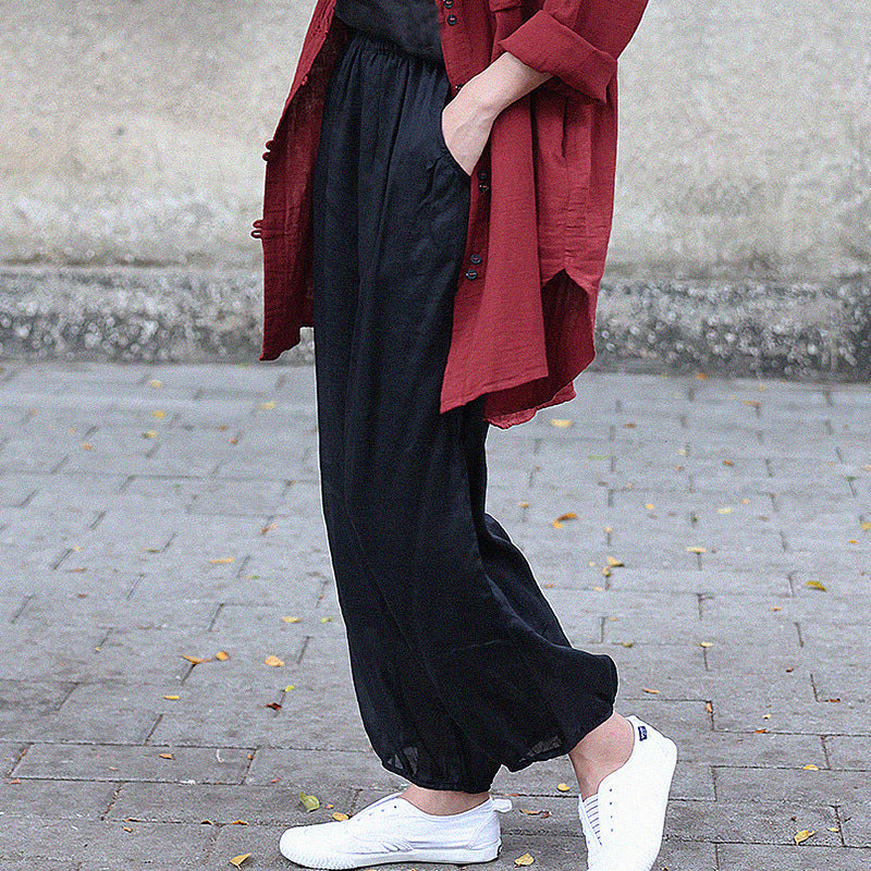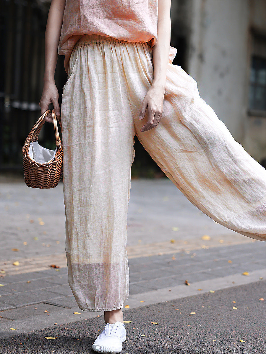 Indulge in luxury and sophistication with our Women Vintage Summer Solid Dual-side 100%Linen Bloomers SC1028. Crafted from fine linen fabric, this timeless piece showcases a vintage style and ankle-length design, while an elastic waist and functional pockets add practicality. Ideal for the warm seasons, it exudes an elegant charm and effortlessly elevates any outfit.