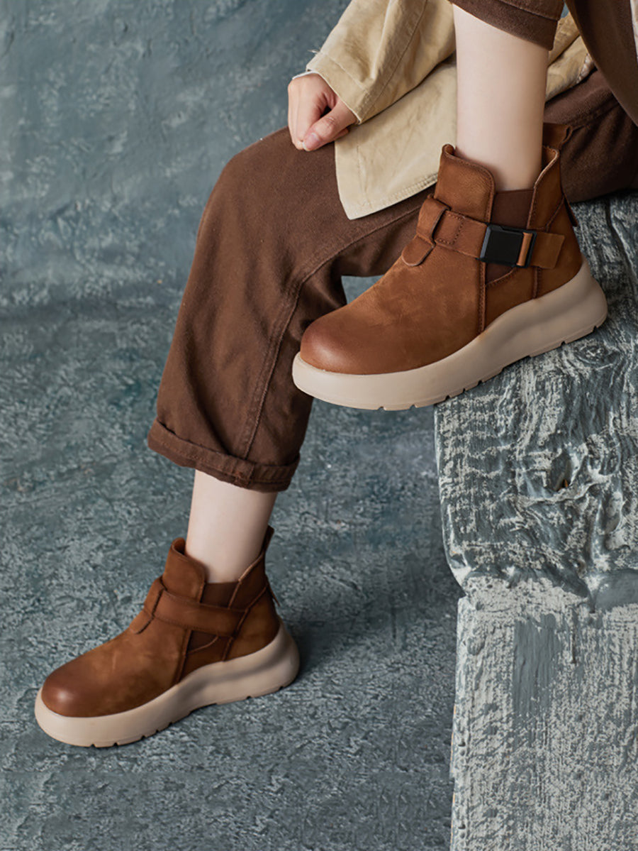 Women Winer Vintage Genuine Leather Platform Boots QM028
