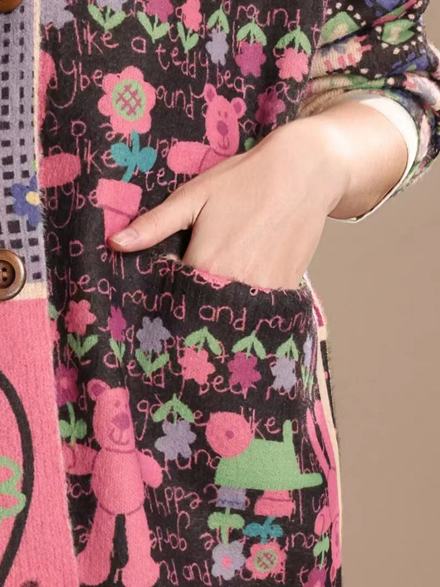 Women Winter Flower Colorblock V-Neck Sweater AS1018