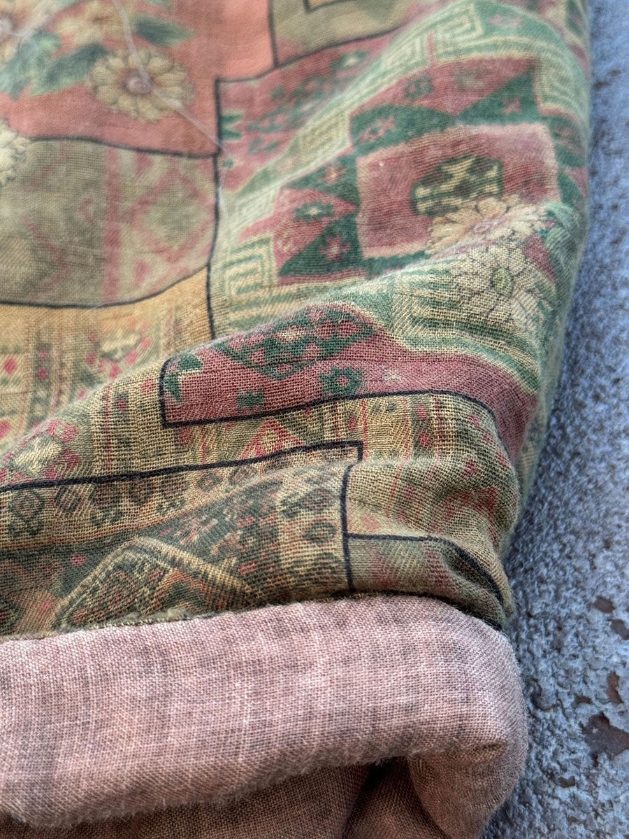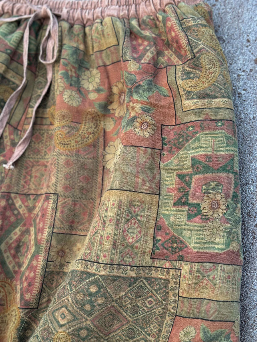 Women Winter Retro Flower Cotton Linen Wide-leg Pants QM002
