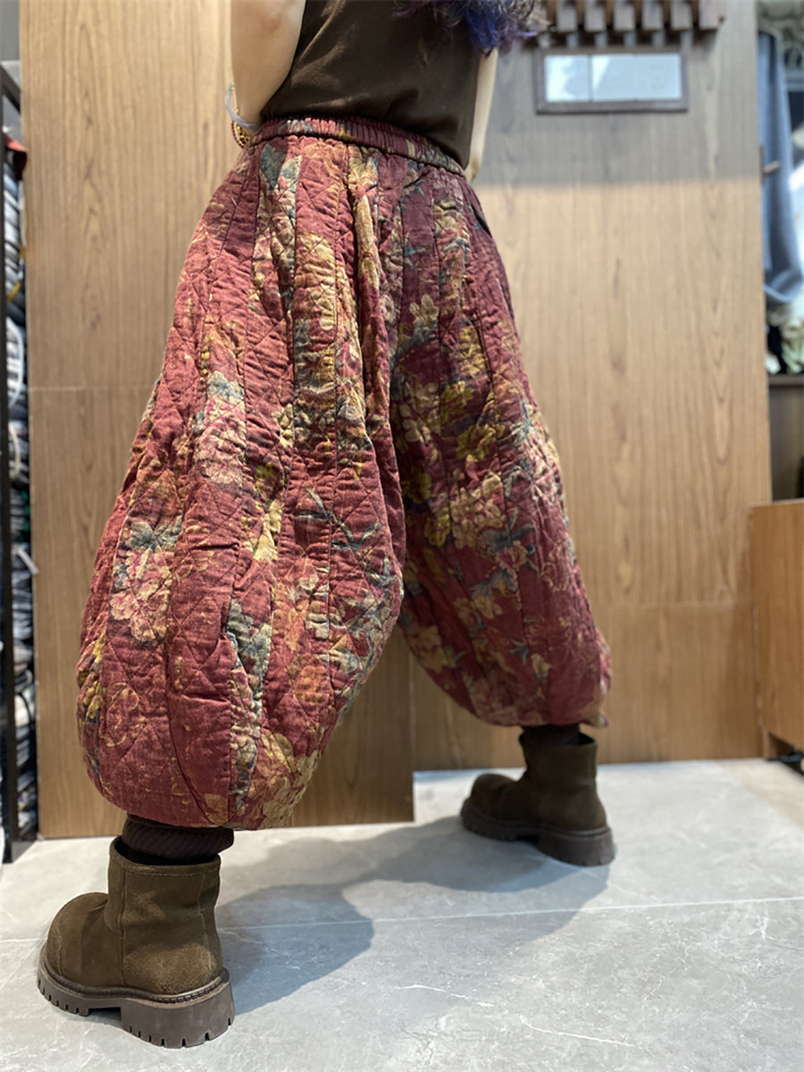 Women Winter Retro Flower Cotton Padded Harem Pants QN002