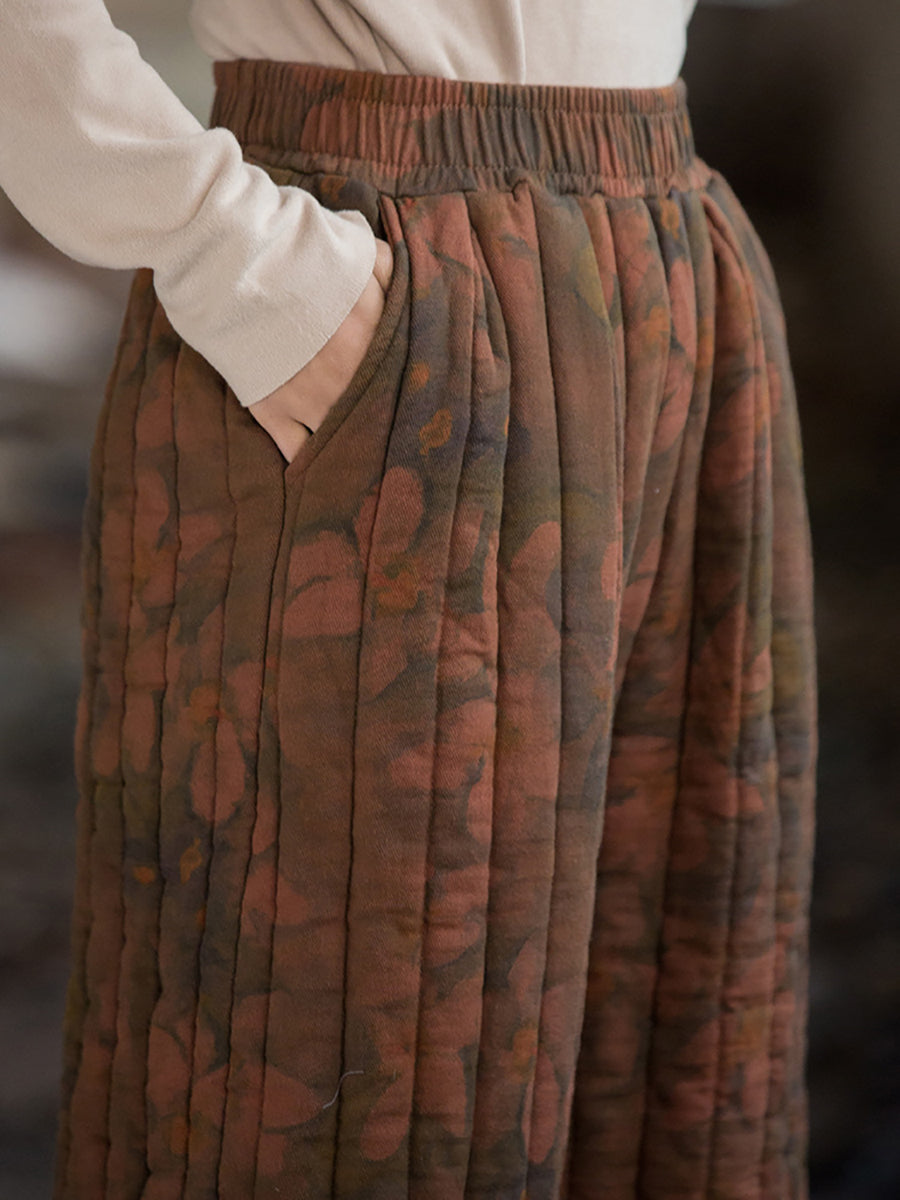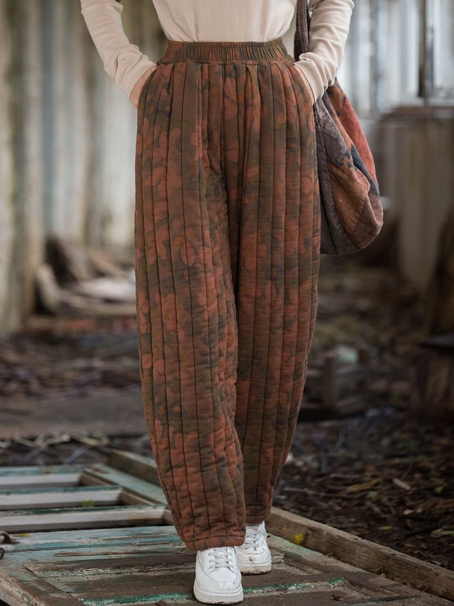 Women Winter Retro Flower Spliced Padded Cotton Harem Pants WU014