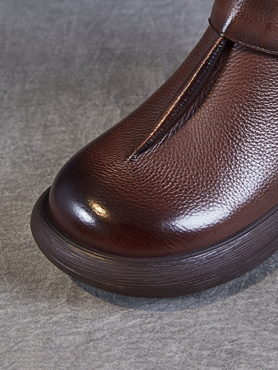 Women Winter Soft Leather Spliced Solid Flat Boots BA1025
