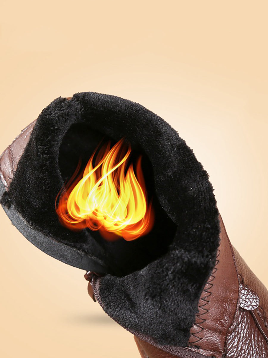 Women Winter Vintage Leather Fleece-lined Low Heel Boots AT1034