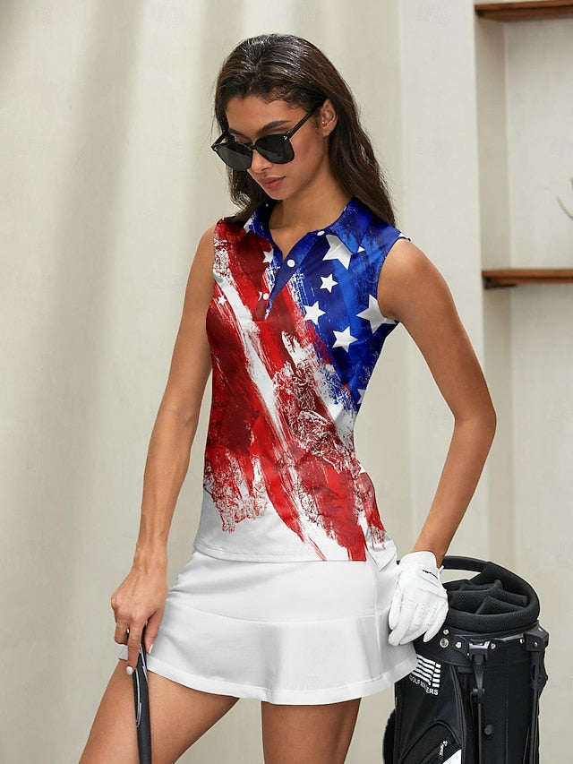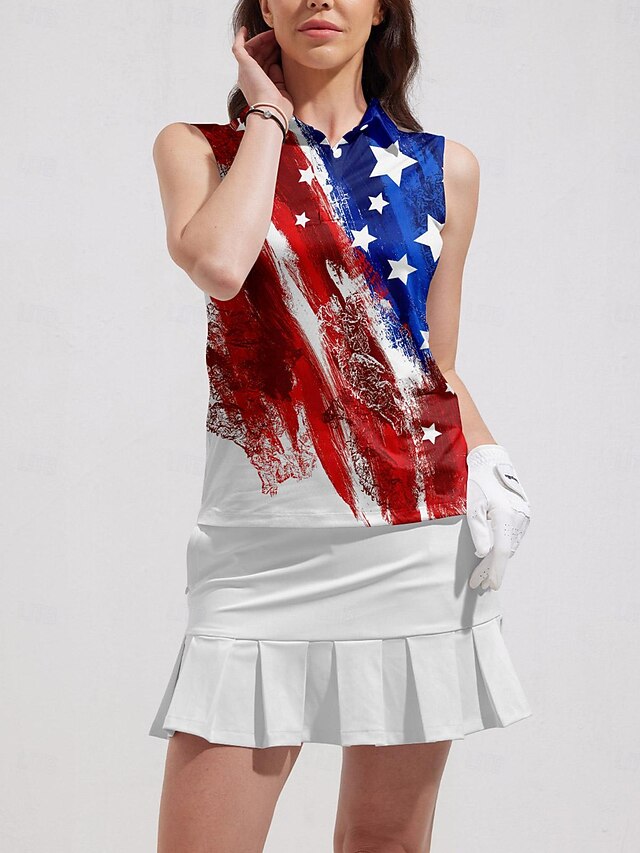 Gender: Women's, Age Group: Adults', Sports Clothing Sub Category: Golf Polo Shirt, Clothing Type: Top, Activity: Pickleball, Golf, Tennis, Occasion: Athleisure, Sports, Season: Summer, Fit Type: Regular Fit, Elasticity: High Elasticity, Function: Moisture Wicking, Breathable, Sun Protection, Soft, Fabric: Spandex, 21 GRAMS Airful 2.0 Fabric, Polyester, Sleeve Length: Sleeveless, Pattern: Flag, Look After Me: Wet and Dry Cleaning, Washable,