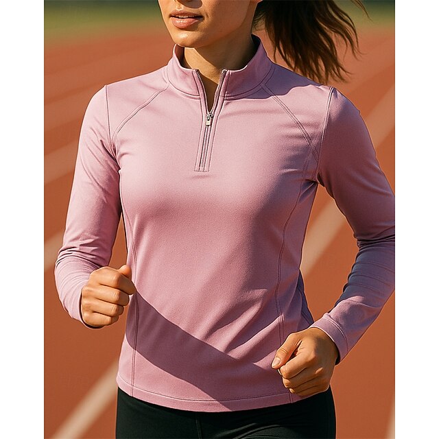 Gender: Women's, Sports Clothing Sub Category: Running Top, Golf Polo Shirt, Running Shirt, Sweatshirt, Clothing Type: Top, Activity: Golf, Tennis, Running, Occasion: Outdoor, Sports, Season: Summer, Spring, Fit Type: Regular Fit, Elasticity: Micro-elastic, Function: Quick Dry, Elastic, Breathable, Lightweight, Fabric: Polyester, Sleeve Length: Long Sleeve, Design: Slim, Quarter Zip, Neckline: Stand Collar, Pattern: Solid Colored, Look After Me: Wet and Dry Cleaning, Washable, Bust (cm): XS:80;S:84;M:88;L:92;XL:98;XXL:104, Length (cm): XS:63;S:64;M:65;L:66;XL:67;XXL:68,