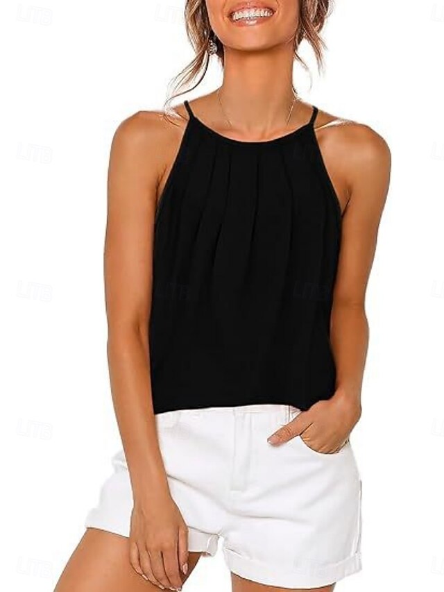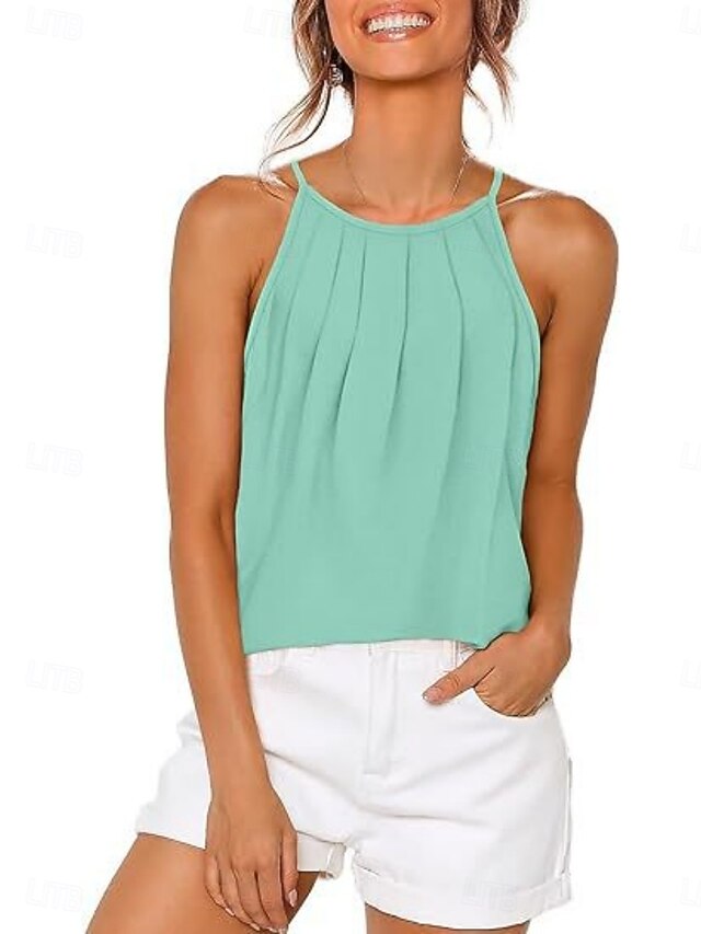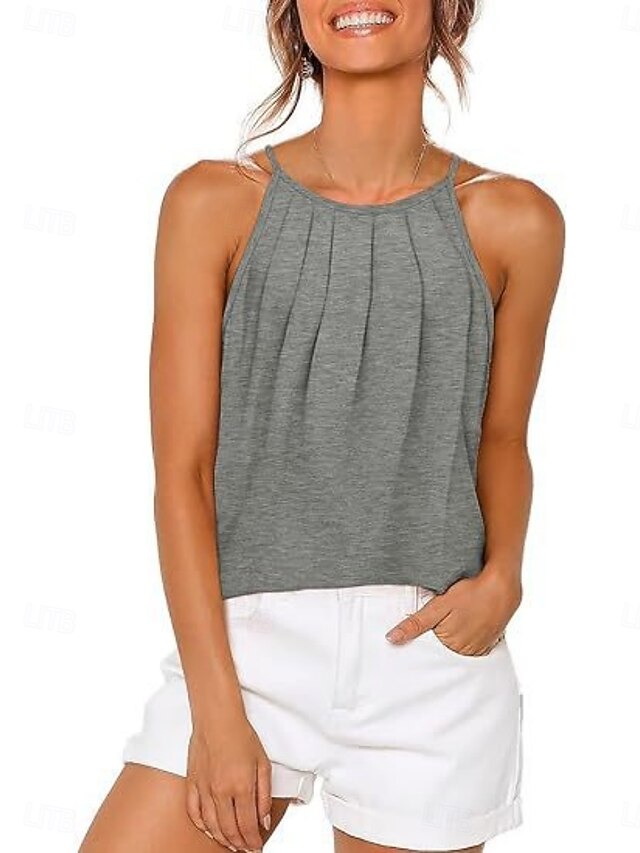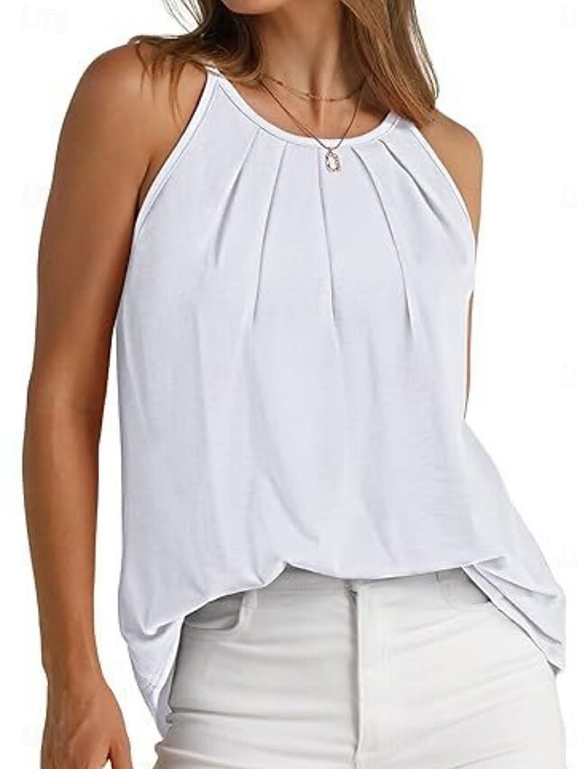 Women's Tank Top Sleeveless Shirt Tee Top Pleats Solid