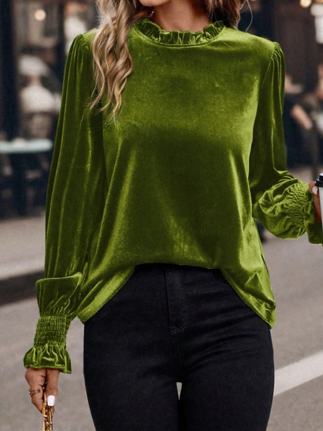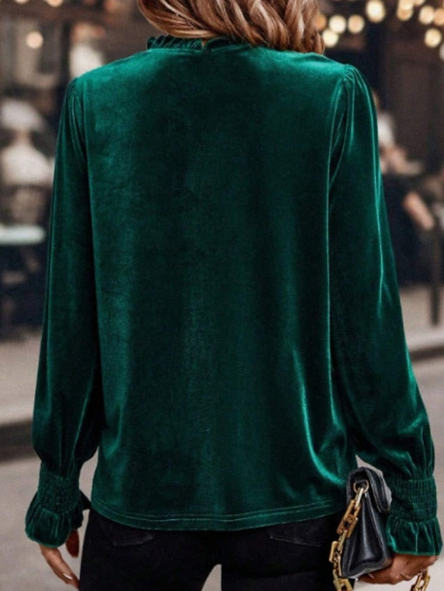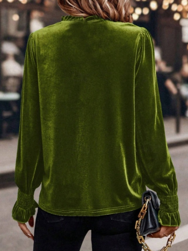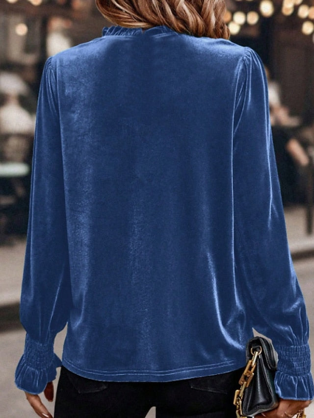 Women's Velvet Elegant Dressy Blouse Ruched Plain Vintage